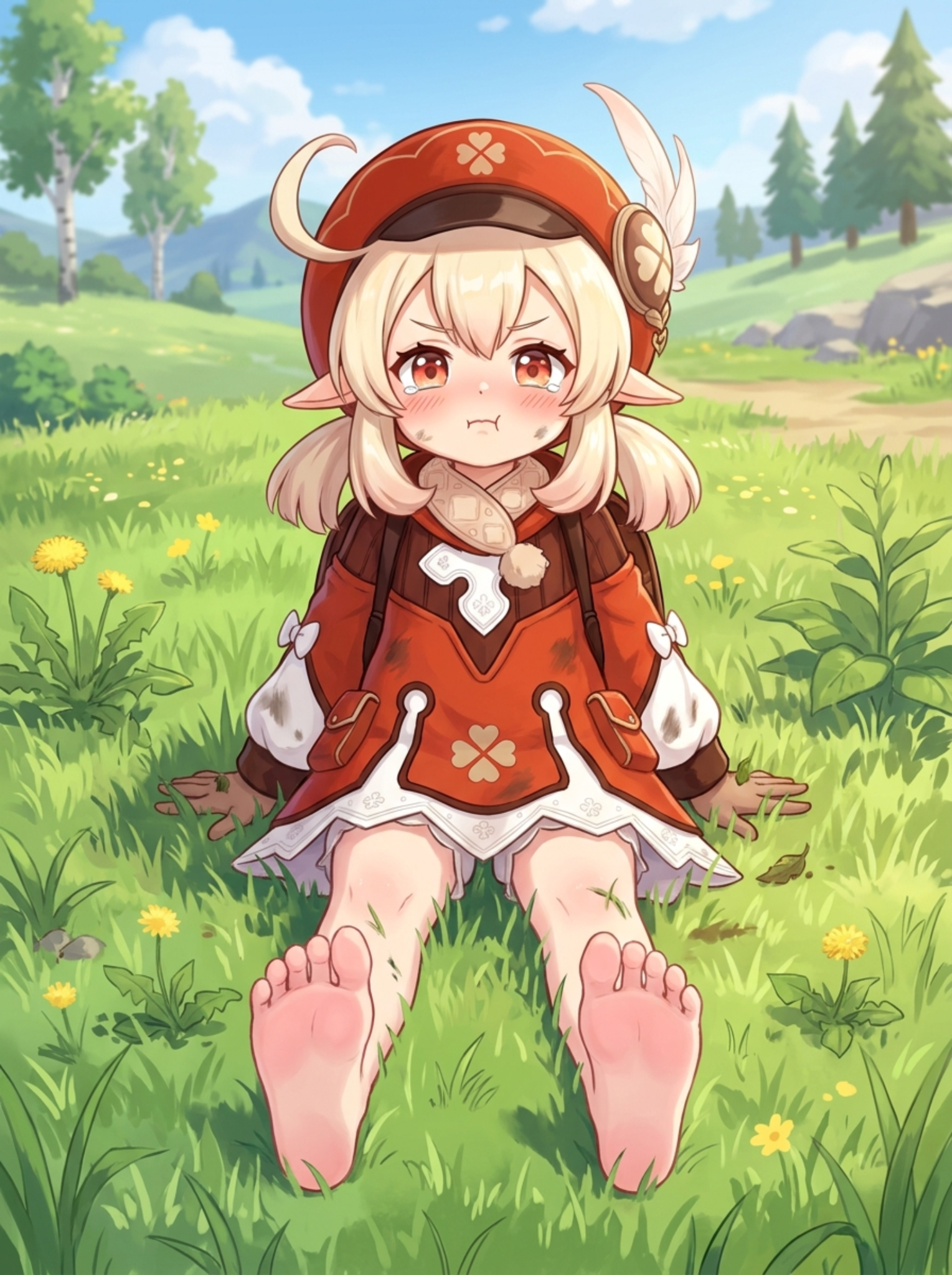 >>27361 Сначала подумалось "Упала и хнычет.". Трава на коленках, одежда испачкана. Или… "С голоду жуёт траву! Полный рот набила!". И уже не развидеть. На подножном корму! Срочно выдать ей булочку!